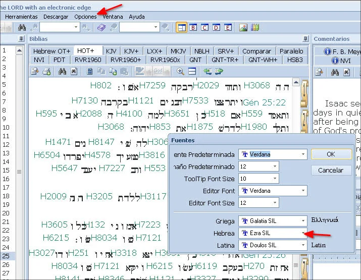 y clic en "Aplicar" y "Aceptar". Cierre e-Sword si lo tenía abierto y cuando lo abra otra vez al programa verá que las fuentes tienen otro tamaño.