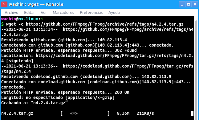 wget -c https://github.com/FFmpeg/FFmpeg/archive/refs/tags/n4.2.4.tar.gz