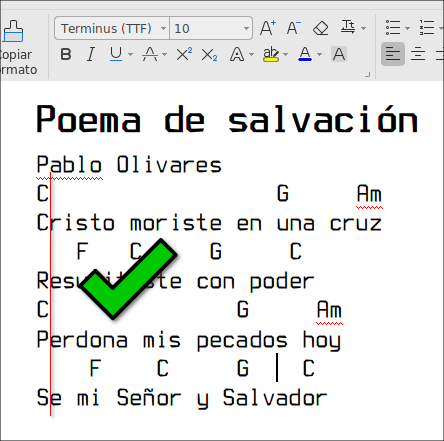 Si usted en algún momento quiera hacer por ejemplo un cancionero de acordes de guitarra y necesite usar fuentes del tipo mono pues hay un problema, no todas las fuentes funcionan